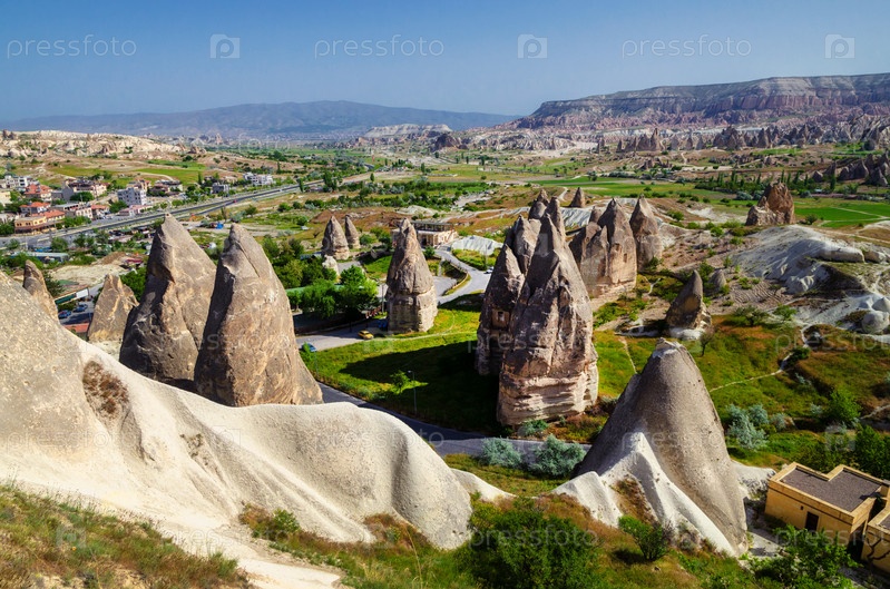 Панорамный вид на Каппадокию. Каппадокия известна во всем мире как одно из лучших мест для полетов на воздушных шарах. Гереме, Каппадокия, Турция. Пейзажный фон