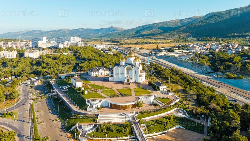 Геленджик, Россия. Собор Андрея Первозванного. Андреевский парк, вид с воздуха