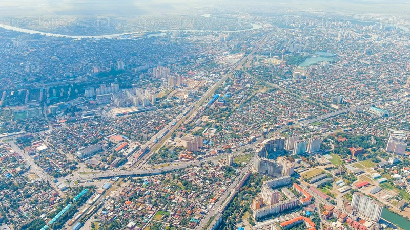 Краснодар, Россия. Панорамный вид на город с высоты птичьего полета