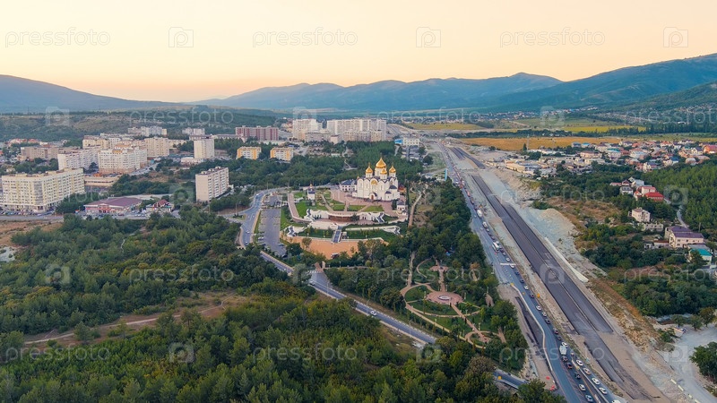 Геленджик, Россия. Собор Андрея Первозванного. Андреевский парк, вид с воздуха