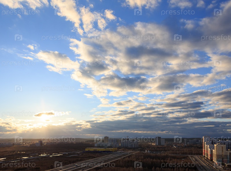 Вечерние облака над пригородом Екатеринбурга, Россия. Закат