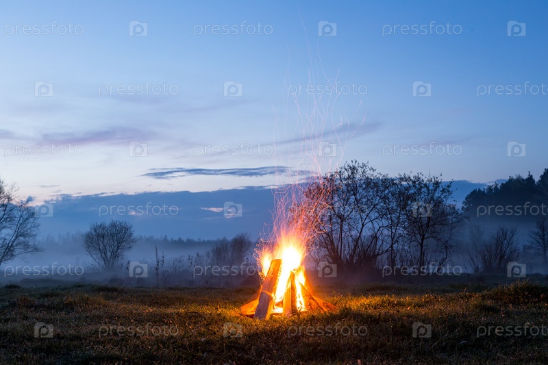 Костер вспыхивает и гаснет. Приближается ночь