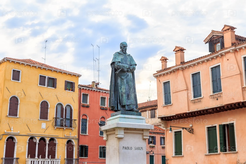 Венеция, Италия. Памятник Фра Паоло Сарпи на площади Санта-Фоска-а-Венеция, работа скульптора Эмилио Марсили (1841-1926)