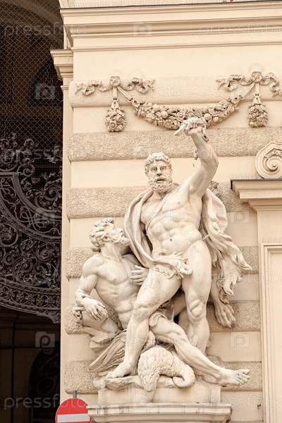 Вена, Австрия. Геракл и Прометей Йозефа Лакса (1851–1909) в Хофбурге. Михайловский флигель на площади Михаэлерплац (Михайловская площадь)