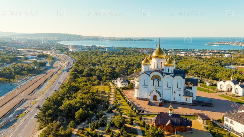 Геленджик, Россия. Собор Андрея Первозванного. Андреевский парк, вид с воздуха