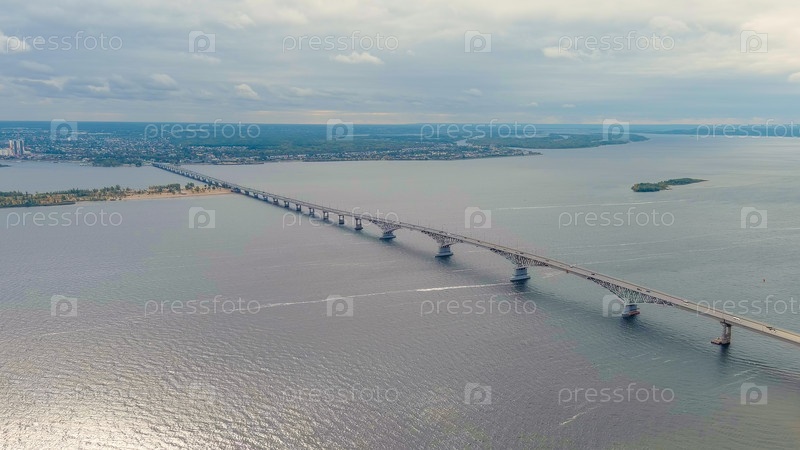 Саратов, Россия. Саратовский мост через Волгу, вид с воздуха
