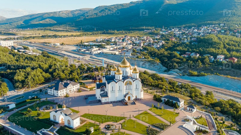 Геленджик, Россия. Собор Андрея Первозванного. Шоссе М4-Дон, вид с воздуха