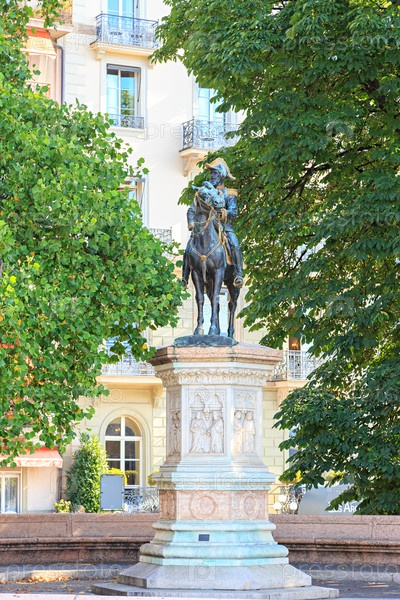 Женева, Швейцария Памятник Брансуику Карл II Герцог фон Брауншвейг Конная статуя изображает герцога в униформе и французской шляпе Огуст Н. Каин (1821 - 1894), французский скульптор