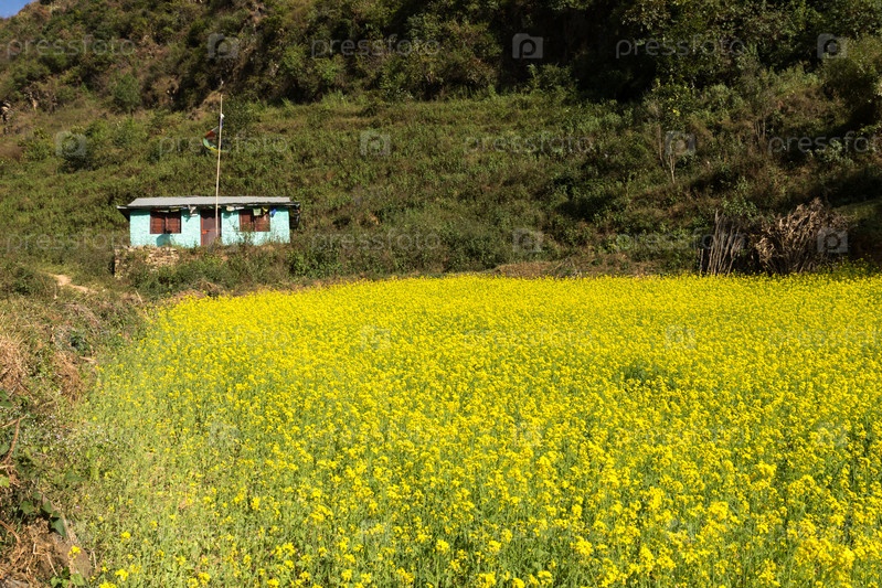 Цветы семян горчицы цветут в сельской деревне в Непале