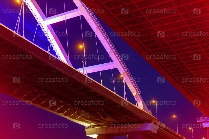 Вечерний пейзаж с Крымским мостом в иллюминации. Россия