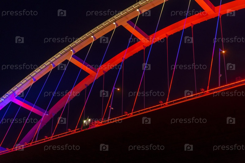 Вечерний пейзаж с Крымским мостом в иллюминации. Россия