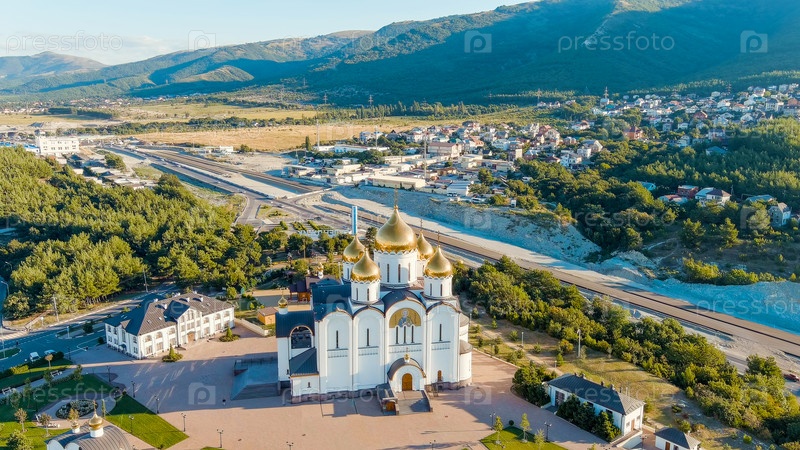 Геленджик, Россия. Собор Андрея Первозванного. Шоссе М4-Дон, вид с воздуха