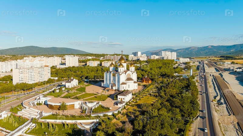 Геленджик, Россия. Собор Андрея Первозванного. Андреевский парк, вид с воздуха