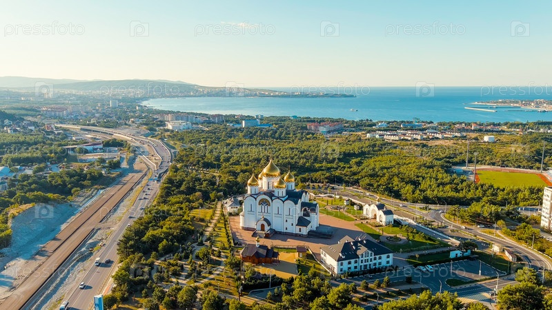 Геленджик, Россия. Собор Андрея Первозванного. Андреевский парк, вид с воздуха