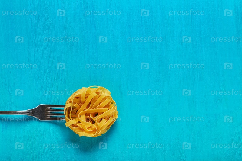Концепция еды, макароны на синем фоне
