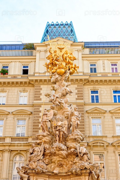 Вена, Австрия. Чумной столб (Песцауле). Колонна Троицы в стиле барокко, посвященная эпидемии бубонной чумы в 1679 году. Установлена в 1693 году. Троица и Пирамида Облаков с девятью ангельскими хорами