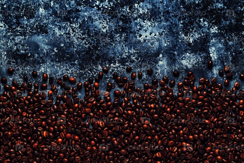 Кофейные зерна на темном фоне бетона
