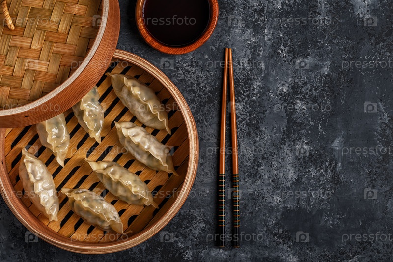 Свежие пельмени на фоне темного камня