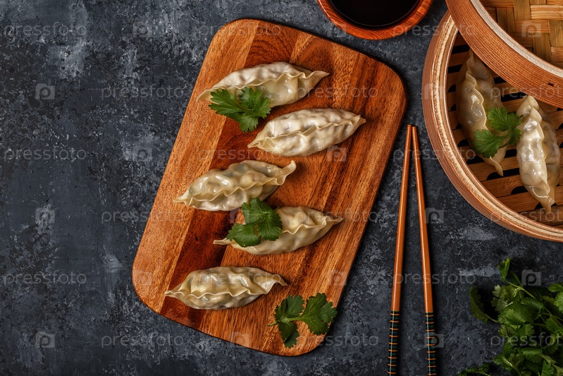Свежие пельмени на фоне темного камня