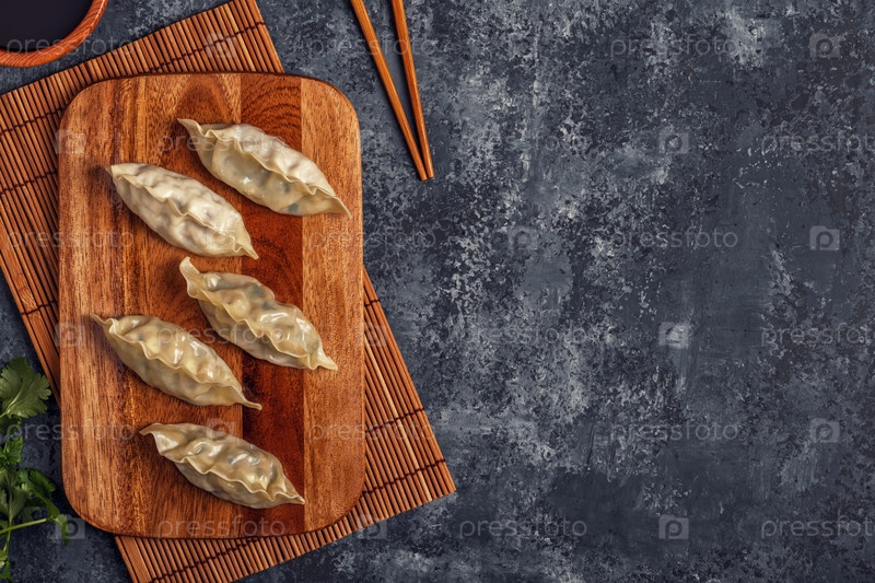 Свежие пельмени на фоне темного камня