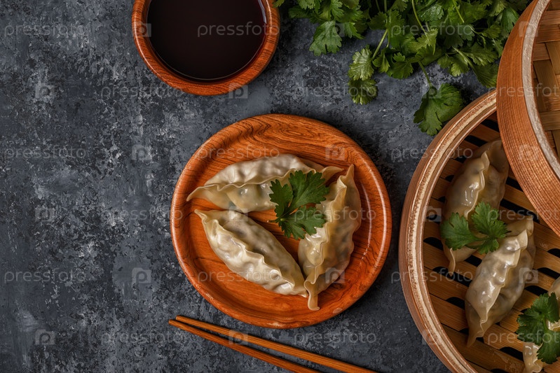 Свежие пельмени на фоне темного камня