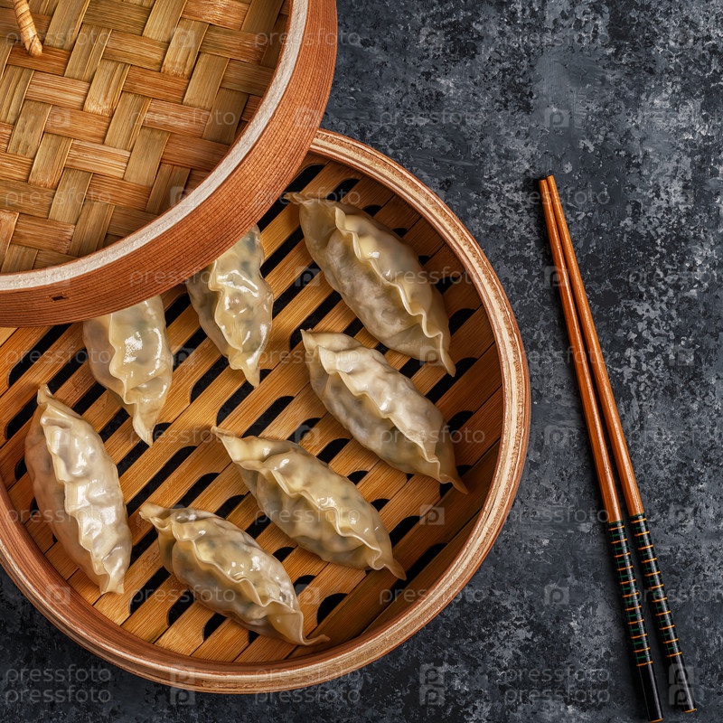 Свежие пельмени на фоне темного камня