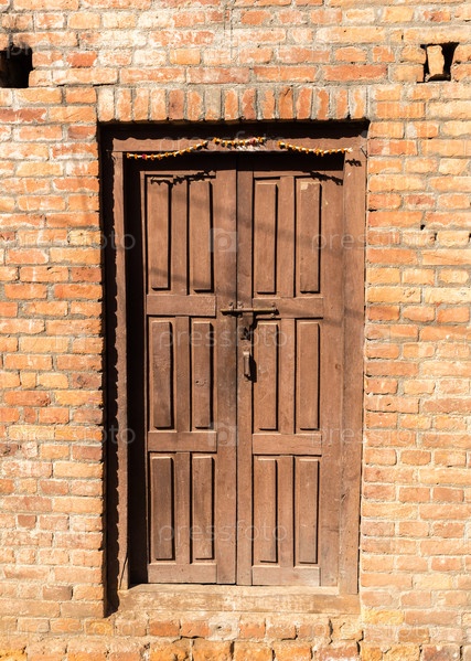 Древняя деревянная дверь в каменной стене, Непал