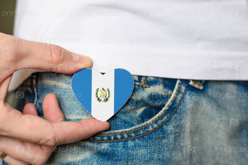 Деревянный значок с гватемальским флагом в форме сердца в мужской руке