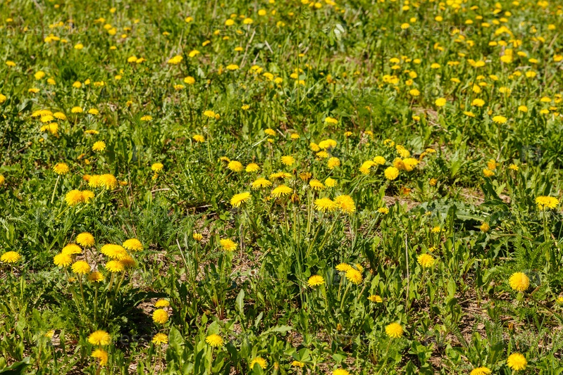 Желтые цветы одуванчика. Фон поля одуванчиков в солнечный весенний день