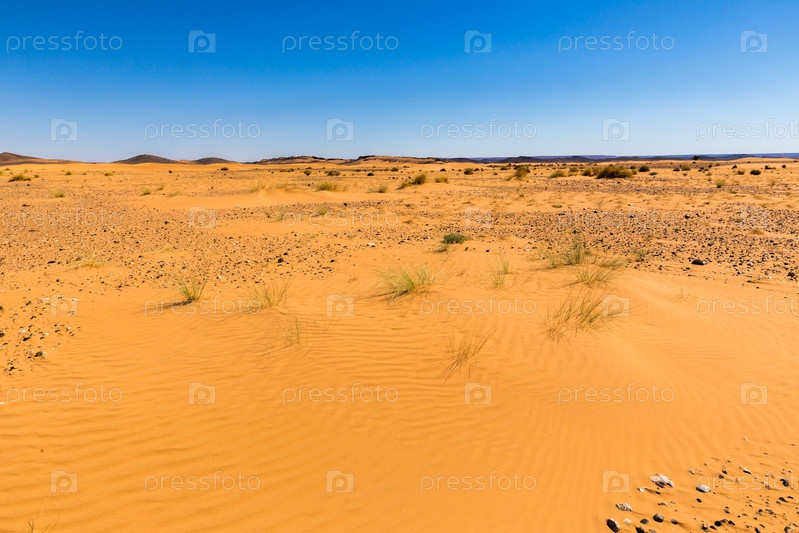 Песчаная дюна с травой в пустыне Сахара, Марокко