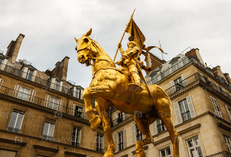 Золотая статуя Святой Жанны д'Арк на улице Риволи в Париже, Франция