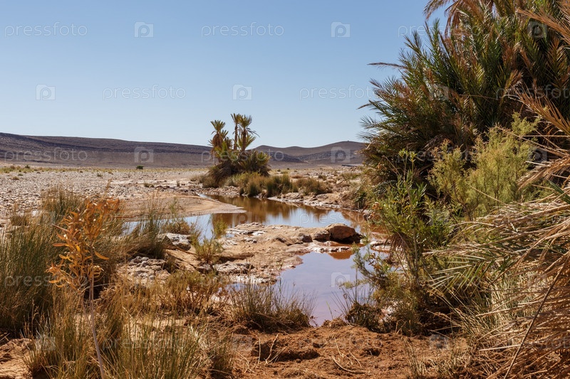 Оазис с водой в пустыне Сахара. Марокко