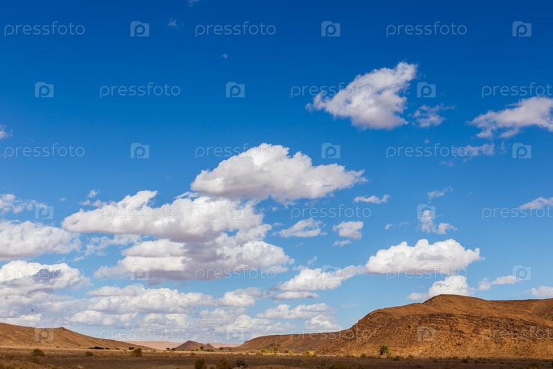 Белые облака на голубом небе. Пустыня Сахара. небо и пустыня