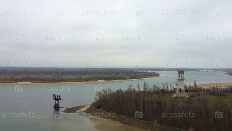 Маяк и памятник Степану Разину. Город Волгодонск. Река Дон
