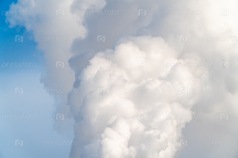 Белые пушистые облака в голубом небе. Природный фон и текстура. Белые кучевые облака