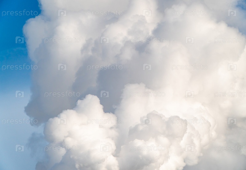 Белые пушистые облака на голубом небе. Естественный фон и текстура. Белые кучевые облака