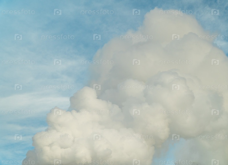 Белые пушистые облака на голубом небе. Естественный фон и текстура. Белые кучевые облака