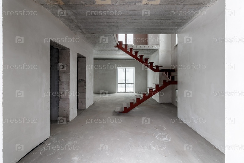 Ремонт в здании. Здание с металлической лестницей во время ремонта. Строительная площадка в доме без людей. Строительство нового дома. Строительство и архитектура
