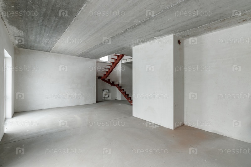 Ремонт в здании. Здание с металлической лестницей во время ремонта. Строительная площадка в доме без людей. Строительство нового дома. Строительство и архитектура