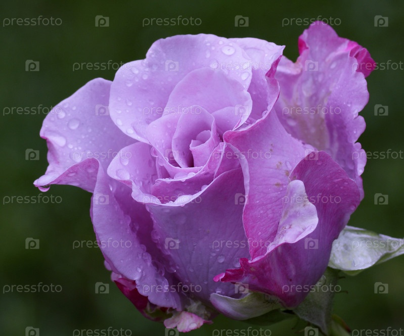 Роза с каплями росы крупным планом на зеленом фоне