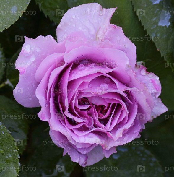 Роза с каплями росы крупным планом на зеленом фоне