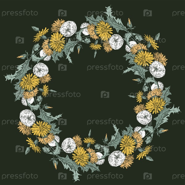 Декоративный цветочный венок из эскизов цветов одуванчиков