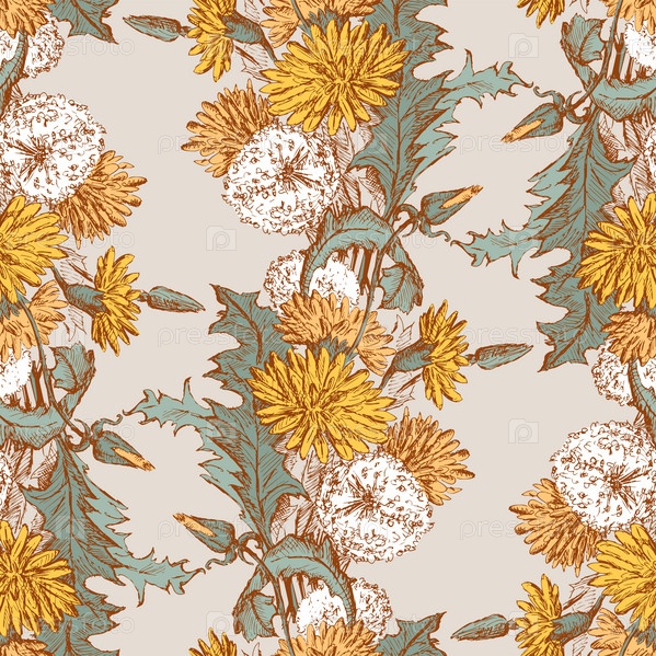 Бесшовный узор из эскизов букетов цветов одуванчиков