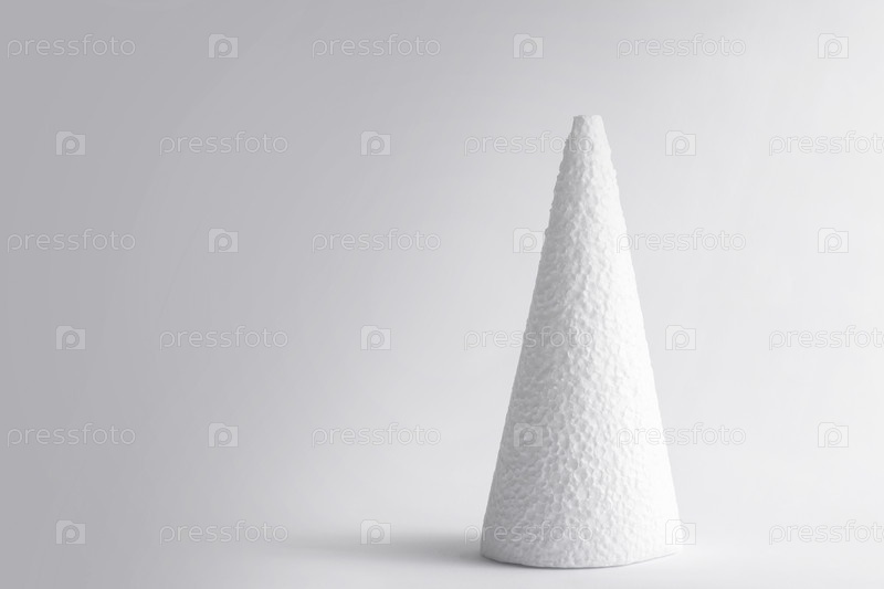 Геометрическая форма конуса на белом сером фоне. Легкий теневой рисунок. Копировать пространство