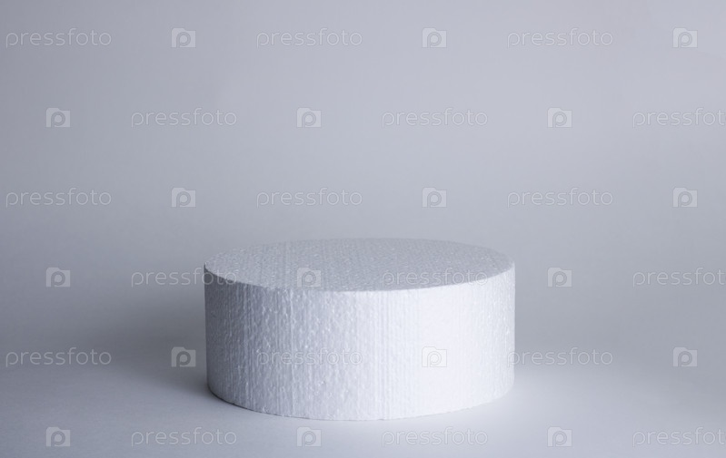 Цилиндр геометрической формы на белом сером фоне. Рисуем легкую тень. Копировать пространство