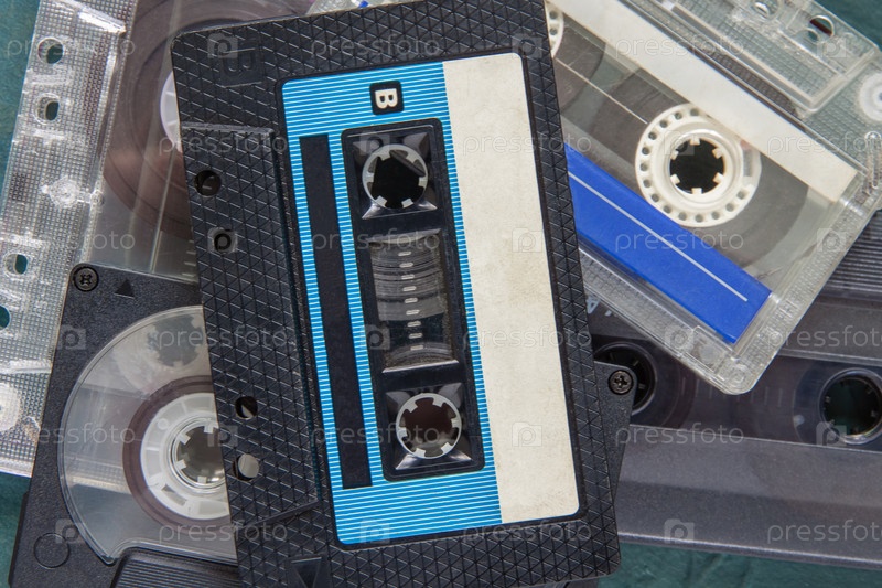 Куча старых аудиокассет крупным планом