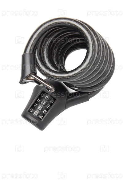 Черный велосипедный кодовый замок с номерами, скрученными по спирали, изолированными на белом фоне