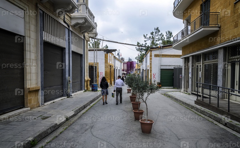 Никосия, Кипр, 21 марта 2017 г.: буферная зона Организации Объединенных Наций (зеленая линия) на Кипре в Никосии