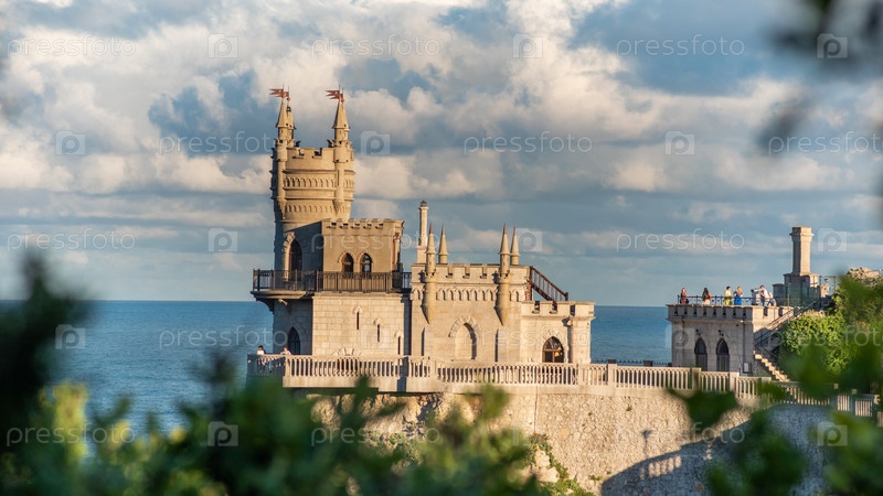 Замок Ласточкино гнездо на скале над Черным морем крупным планом, Крым, Ялта. Одна из самых популярных туристических достопримечательностей Крыма