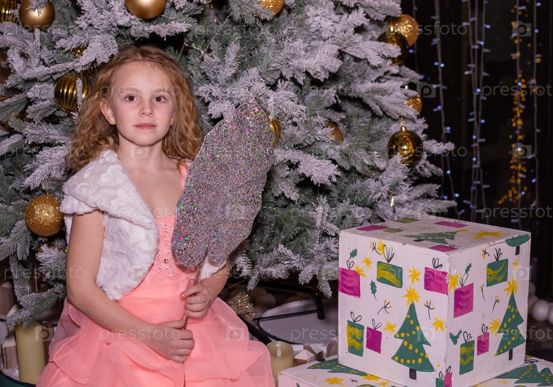 Красивая элегантная девушка возле елки в Новый год